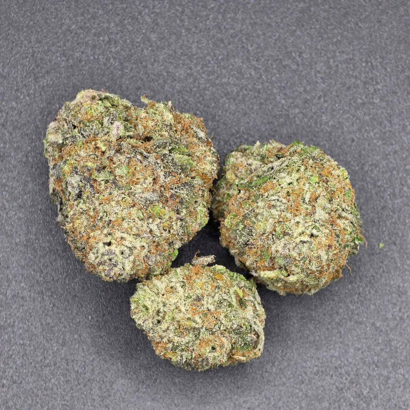 This strain is extremely potent, with lab reports ranging from 32% to 44% THC. It’s best suited for experienced users with a high tolerance.